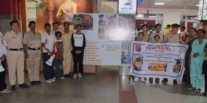 Women Development Centre in collaboration with Railway Protection Force conducted Meri Saheli program at Guwahati Railway Station, displaying Street Play in 3 different platforms on 15th Oct 2025. The purpose of the play was to create awareness among masses on Toll Free Safety & Security Helpline number 139, for female passenger travelling alone in the train.
