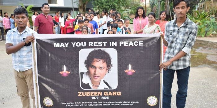 A silent march was organized on 20th October 2025 by Women Development Centre, to pay tribute to the legendary singer and cultural icon Zubeen Garg at his place in Kharguli. The staff and students gathered peacefully, holding candles as a mark of love, respect, and remembrance for the artist. They expressed their heartfelt condolences through collective prayers and prayed for the eternal peace of his soul.
